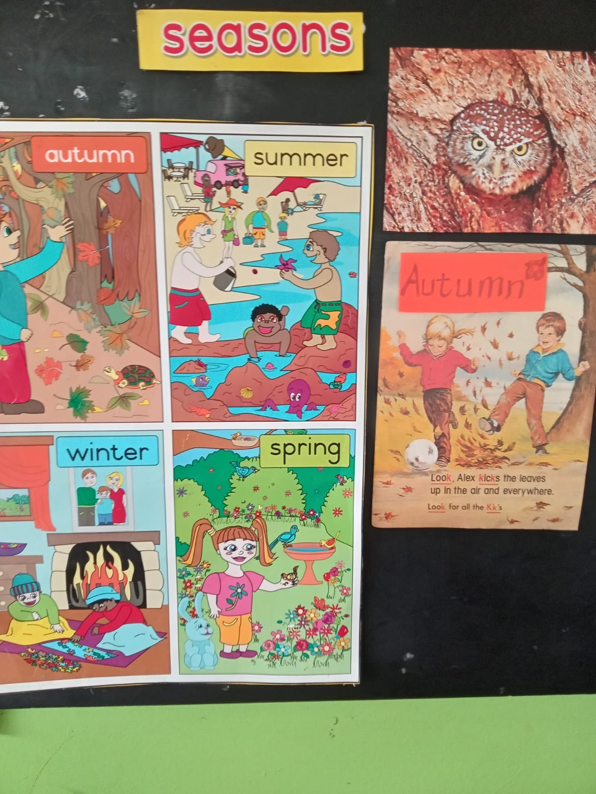 Auch die Jahreszeiten standen auf dem Lehrplan. Da der Herbst in Südafrika anders verläuft als in Europa – es wird zwar kühler, doch die meisten Bäume behalten ihre Blätter – wurden den Kindern die typischen Merkmale des Herbstes anhand von Postern anschaulich vermittelt.