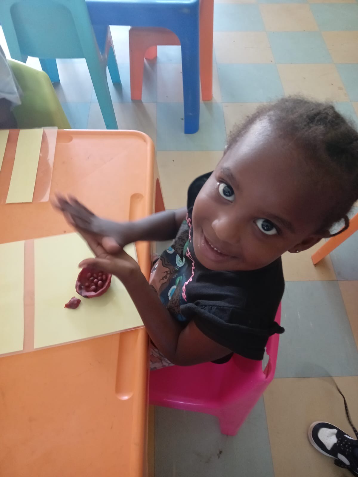 Im Rahmen einer kreativen Bastelaktivität kneteten die Kinder kleine Schüsseln und füllten diese mit Früchten. Dabei lernten sie spielerisch die Namen der verschiedenen Früchte kennen – eine wunderbare Verbindung von Kreativität und Spracherwerb.